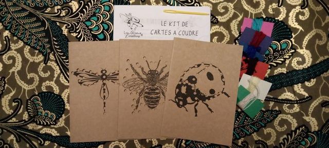 1. 3 cartes à coudre en carton recyclé : 10 thèmes au choix.
