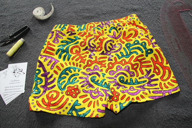 Vous avez également le choix d'un short 100% wax ou un autre tissu 100% coton : double gaze, popeline de coton, etc. (dans la limite des stocks de tissu disponibles pour votre choix de couleurs).